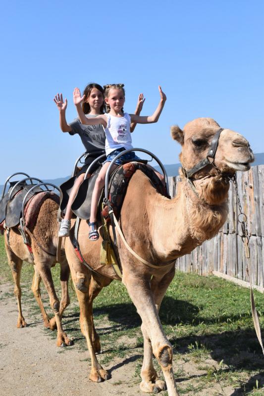• В парка има 22 приятелски настроени камили, които са обучени за езда. През целия престой учениците ще бъдат в директен контакт с животните, могат да ги хранят, яздят и да си правят снимки с тях.